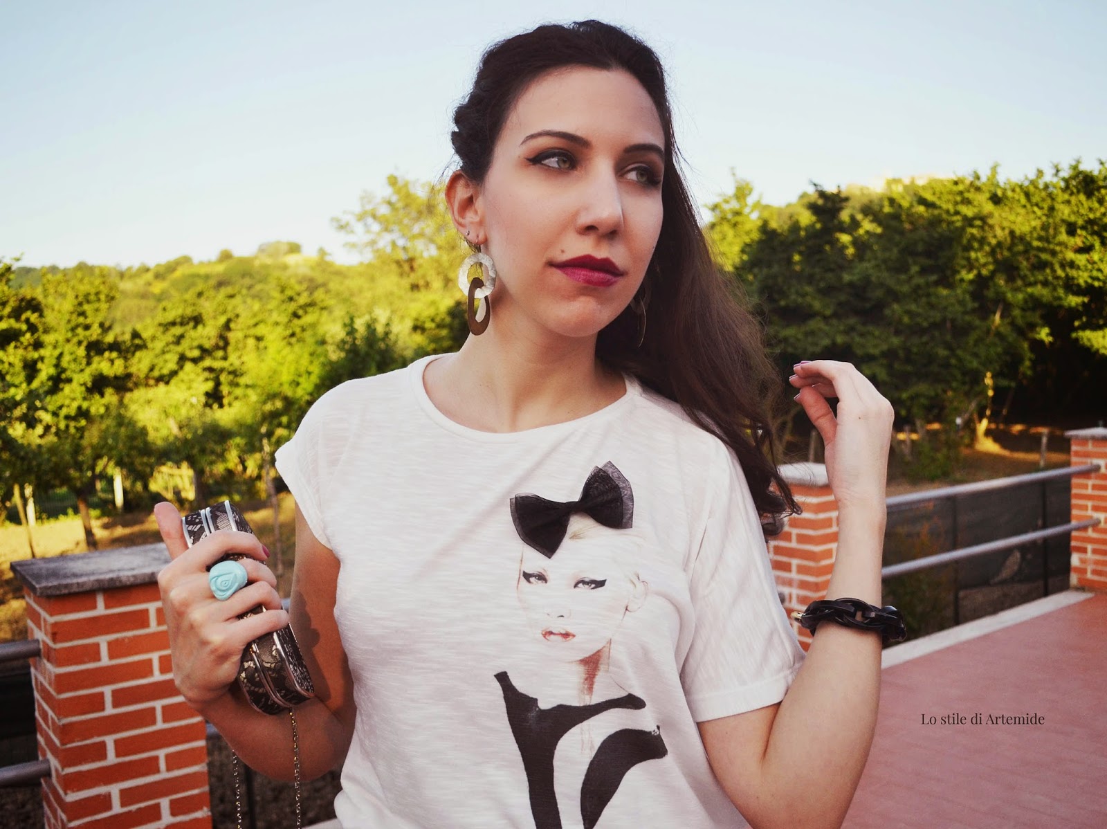 T-shirt is one of most worn item for its ability to adapt to any look. The most popular are those white with designs and applications. This one is a Mosqito t-shirt: white, with a drawing of a woman with perfect eyeliner and a bow in relief (you can buy one simila in my PashionVictim boutique).