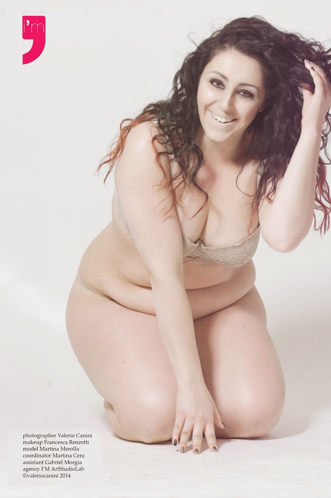 Così un giorno alla I’M Artstudiolab hanno deciso di mettere quella abbondanza, o, come preferisce Martina, quella “tantanza” davanti ad un’obiettivo e lasciare che parlassero le foto: una ragazza mai stata fotografata professionalmente, uno sfondo nero e uno bianco, e la voglia di divertirsi, di spogliarsi, di porre davanti agli occhi di tutti che non c’è spazio per la vergogna quando sei consapevole che i tuoi chili “di troppo” – rispetto a quella taglia corteggiata dalla metà delle donne del pianeta – sono quelli che aggiungono al tuo corpo femminilità, simpatia, forza ed energia che sai già di possedere. La vera felicità non è nascosta in una taglia ma è una consapevolezza: curvy, mi scrive Martina nella mail, significa “guardarsi allo specchio ed essere in pace col proprio corpo, che seppur ricco di curve e dossi, è un corpo pieno di spunti per diventare icona di stile”.