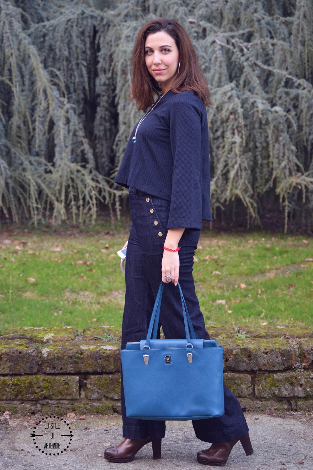 Per esempio i jeans flare/scampanati (proprio come la felpa blu!) così tanto di moda nei Seventies subiscono una contaminazione più moderna grazie alla vita alta; la borsa in pelle Piero Guidi con la possibilità di targhetta impressa con un mio selfie e le cuffie Fresh n’ Rebel sono dimostrazioni più del progresso che va avanti che di un ritorno al passato…