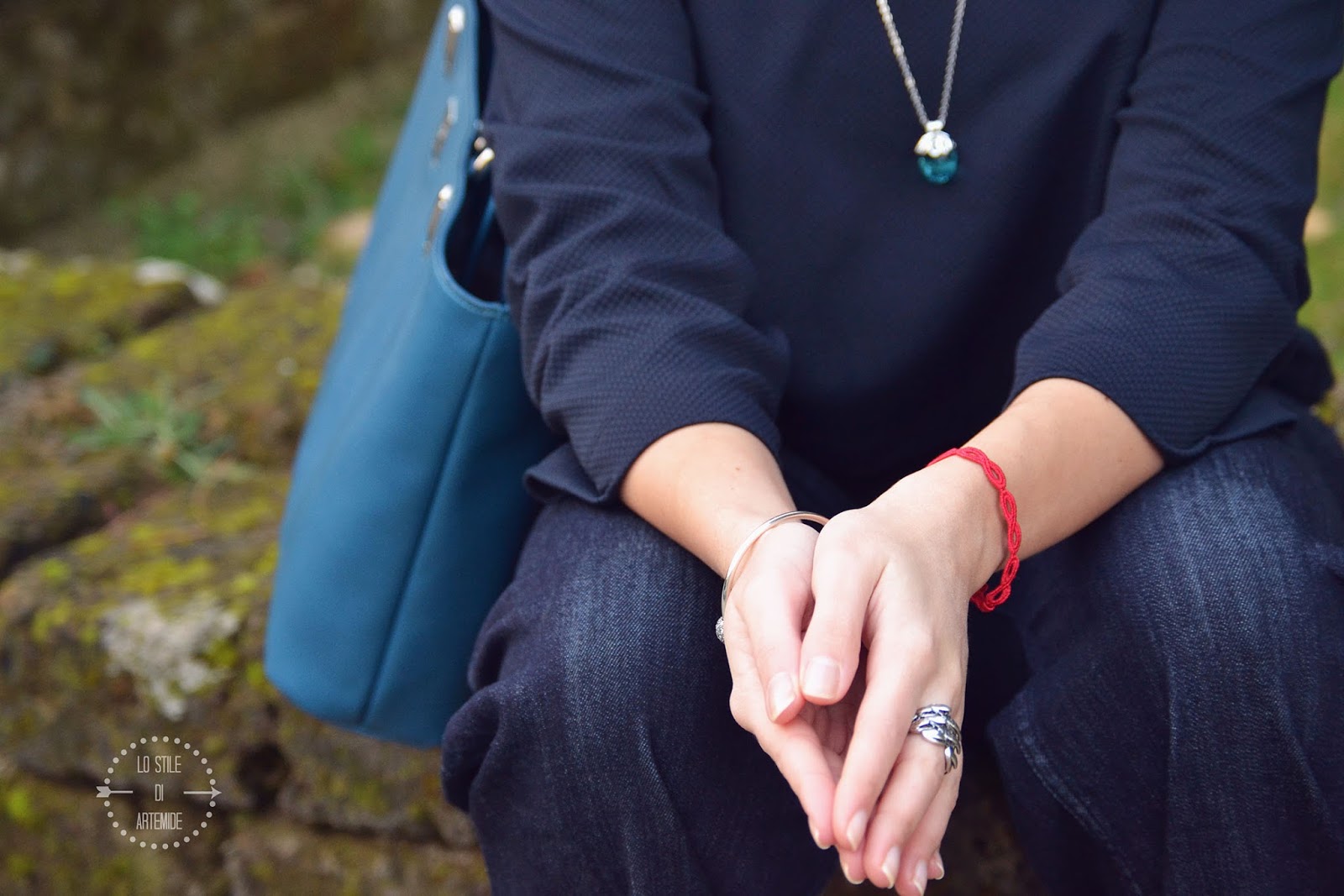 Ancora una volta ho scelto un gioiello Raso Gioielli: un ciondolo con gemma azzurra, mentre in quest’altro post vi avevo mostrato la sua versione in viola. Al polso il Cruciani Kate ed il bracciale Pandora nella sua nuova versione rigida, con 3 charms: quello in vetro di Murano blu sfaccettato, il charm Soldi, il charm Quadrifoglio e la clip Costellazione per bloccare i charms al loro posto.